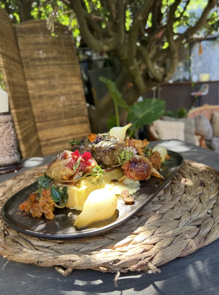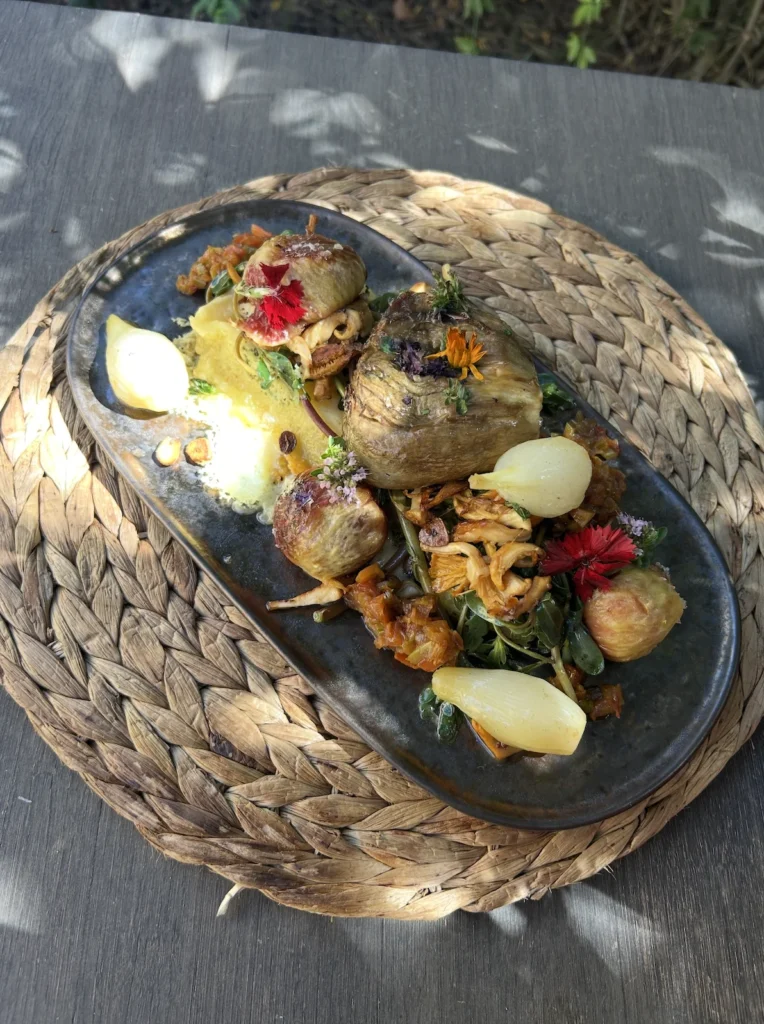 amb mel i herbes del bosc, cebes del platillo confitades i verdolaga.